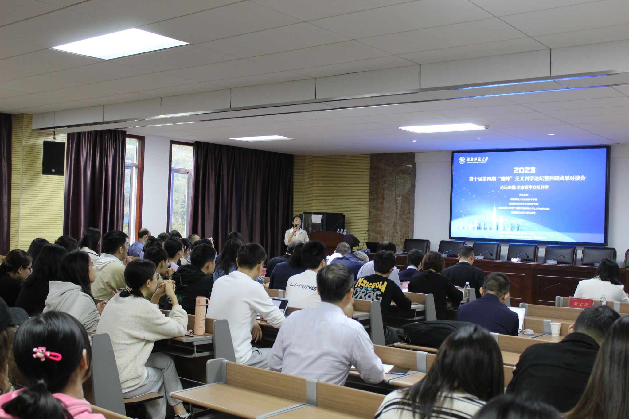 10月28日上午,我校第十届第四期“麓峰”交叉科学论坛暨科研成果对接会在UG环球360官方网站3号楼B307报告厅举行。本期论坛的主题是“生命医学交叉与融合”,由UG环球360官方网站、交叉科学研究院、资产经营管理有限公司(大科城办)、科学技术处共同主办。